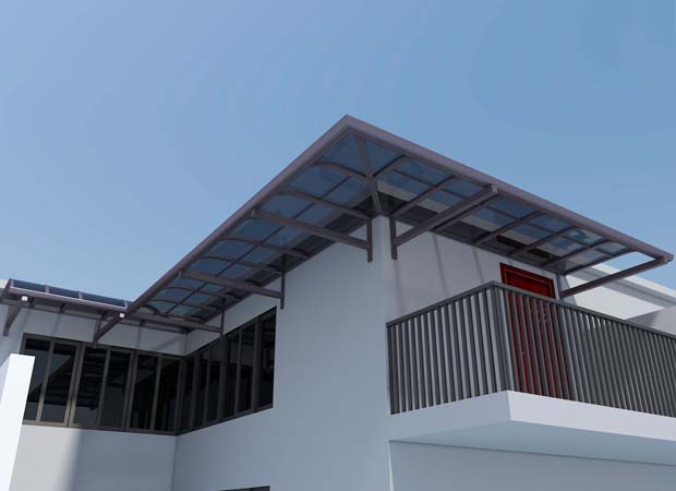 頂棚采用進(jìn)口聚碳酸酯板,抗沖擊是玻璃的數(shù)百倍,有效防止高空墜物