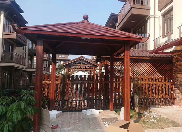 涼亭,傳統(tǒng)結(jié)構(gòu)單體建筑之一。因?yàn)樵煨洼p巧,選材不拘,布設(shè)靈活而被廣泛應(yīng)用在園林建筑之中。是人們憑借一定材料建造出來的,而材料的特性,也必然會對建筑的造型風(fēng)格產(chǎn)生影響。所以,涼亭的造型藝術(shù),也在一定程度上取決于所選用的材料。由于各種材料性能的差異,因此,不同材料建造的涼亭,就各自帶有非常顯著的不同特色。