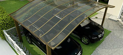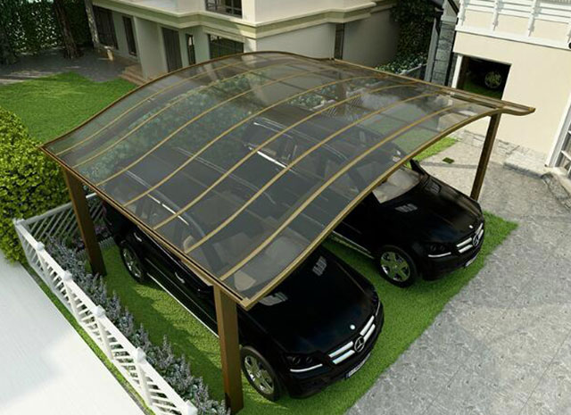 頂棚采用進(jìn)口聚碳酸酯板,抗沖擊比玻璃強(qiáng),有效防止高空墜物