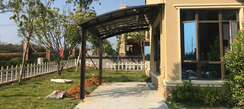 骨架材質:鈦鋁合金 頂棚材質:聚碳酸酯板 面積計算:按頂棚展開面 型材壁厚:1mm-4mm 板材厚度:2mm和3mm 尺寸:可定制 型材工藝:噴涂、電泳、轉印 框架顏色:白色、灰色、咖啡色、香檳色、木紋色 板材顏色:透明、茶色、淺灰色、深灰色、藍色 適用范圍:企業工廠、政府單位、別墅小區 款式選擇:單邊式車棚、合抱式車棚、斜拉式車棚、歐式S型車棚