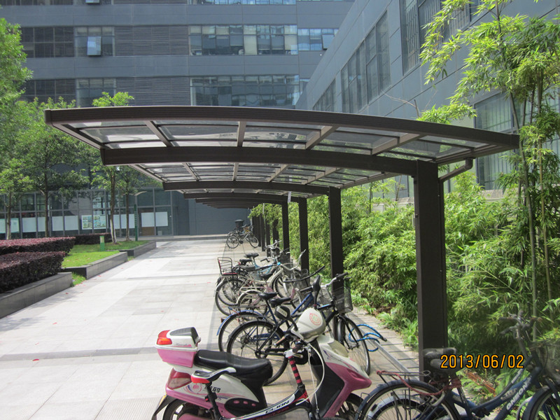 自行車棚作為城市公交設施綠色出行的一部分,是市民停放自行車的固定場所,自行車棚的建設單位打造城市低碳交通,為了還城市一個健康清新的環境,市民要加強意識,從而達到減少低碳元素類,特別是二氧化碳的排放量,從而減少對大氣的污染,減緩生態惡化,市政府應設立自行車棚,為市民能實現綠色低碳環保的環境提供場所。鋁合金自行車棚是目前備受歡迎的車棚類型,在國外已逐漸應用于體別墅小區,企業工廠,政府單位等建筑中。