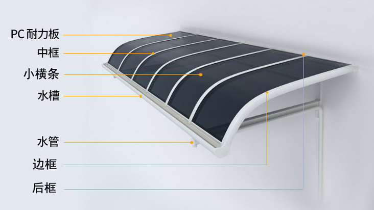 頂棚采用進(jìn)口聚碳酸酯板,抗沖擊是玻璃的數(shù)百倍,有效防止高空墜物