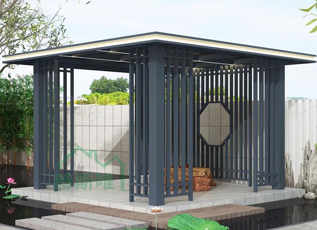 5、新中式鋁合涼亭防蟲蛀、防白蟻,有效杜絕蟲類侵蝕隱患,使用壽命高達幾十年。