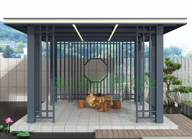 2、 新中式鋁合涼亭可加工性好,可訂、可刨、可鋸、可鉆、可彎可直,可圓可方,可制作各種木制品無法制作的造型。