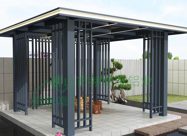 7、新中式鋁合涼亭顏色豐富,可供選擇的顏色眾多。既具有天然木質感和木質紋理,又可以根據自己的個性來定制需要的顏色。