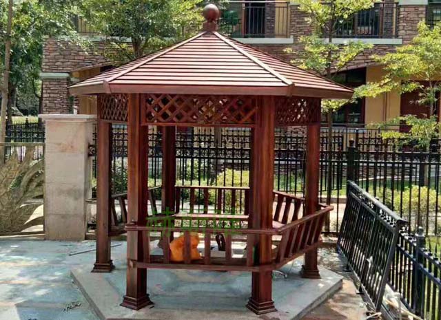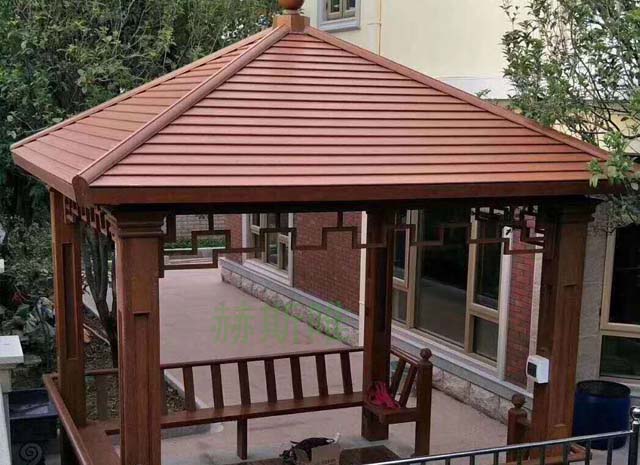 近些年來,鋁制涼亭受到了很多人的青睞,因為鋁制涼亭材質硬不易老化,后期基本不用維護,其外觀經過木紋處理轉印后,質地顏色都和木頭很相似,從遠處更是看不出來區別,經風摧日曬也不易掉色、老化、干裂,而這些在木制涼亭中都無法避免。而且鋁制涼亭建造后牢固性也很好!