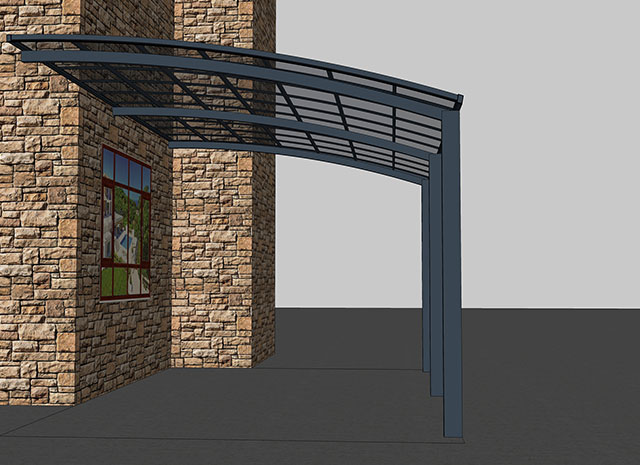 頂棚采用進(jìn)口聚碳酸酯板,抗沖擊是玻璃的數(shù)百倍,有效防止高空墜物