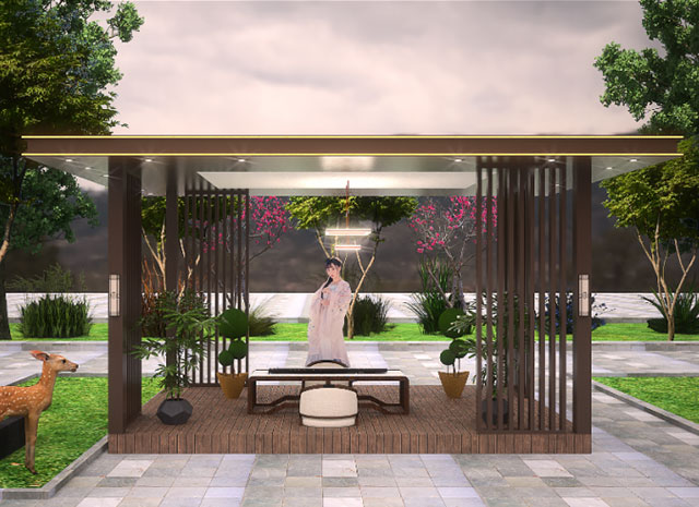 4、新中式鋁合涼亭安全牢固。高強度鈦鋁合金材質,可抵抗各種外力沖擊,不斷裂、不坍塌、不傾倒,安全性能高!