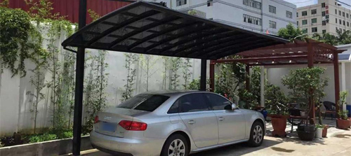 骨架材質:鈦鋁合金 頂棚材質:聚碳酸酯板 面積計算:按頂棚展開面 型材壁厚:1mm-4mm 板材厚度:2mm和3mm 尺寸:可定制 型材工藝:噴涂、電泳、轉印 框架顏色:白色、灰色、咖啡色、香檳色、木紋色 板材顏色:透明、茶色、淺灰色、深灰色、藍色 適用范圍:企業工廠、政府單位、別墅小區 款式選擇:單邊式車棚、合抱式車棚、斜拉式車棚、歐式S型車棚