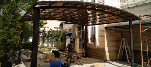 頂棚采用進口聚碳酸酯板,抗沖擊是玻璃的數百倍,有效防止高空墜物