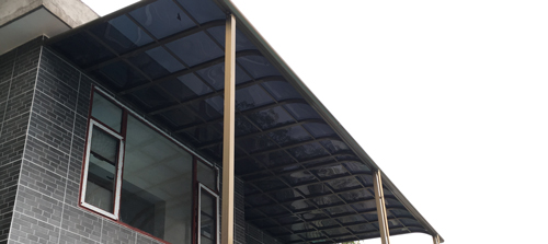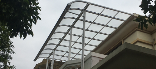 頂棚采用進口聚碳酸酯板,抗沖擊是玻璃的數百倍,有效防止高空墜物